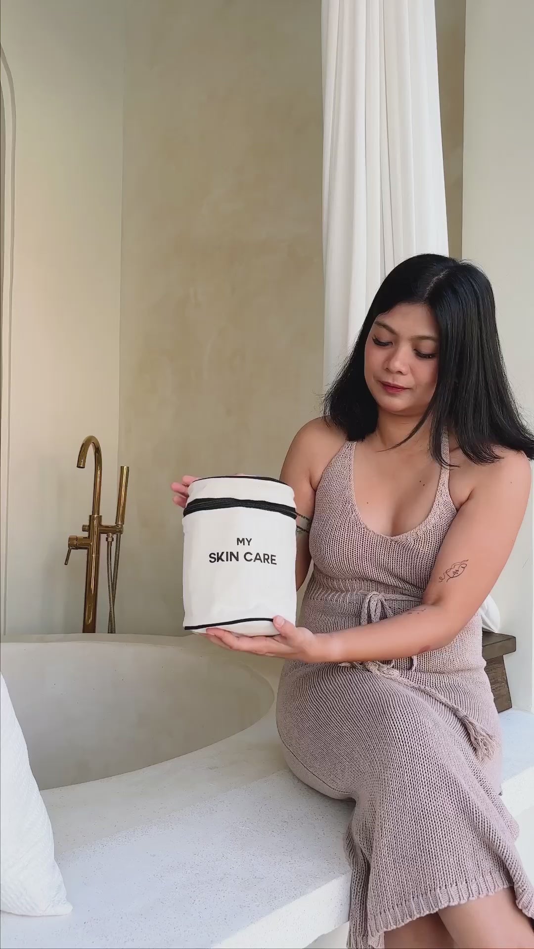 My Skin Care Cylinder Case - is the cutest, ultimate solution for your skincare organization needs! This cylindrical case has laminated lining to prevent leaking into your suitcase or bathroom cabinet. It also features rubber bands and three smaller pockets inside to hold your products in place. The lid also has a small netted pocket. Crafted with the highest quality materials, this eco-friendly case looks great on the go or in your home. To make this case even cuter you can add a monogram to the lid. Say hello to a beautifully organized skincare routine with My Skin Care Cylinder Case by Bag-All.