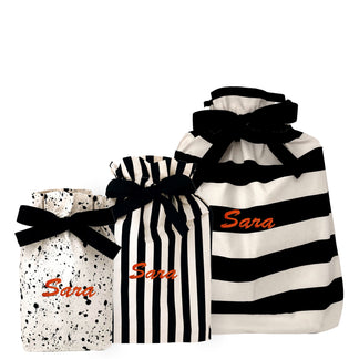 ¡Ahorra $9 en este set! ¡Envuelve tus regalos con estilo con nuestro set de bolsas de regalo reutilizables! Este set incluye Bolsa de Regalo Salpicadura Pequeña, Bolsa de Regalo Rayas Mediana y Bolsa de Regalo Rayas Grande. Las Bolsas de Regalo de Tela se pueden usar cientos de veces y reducen la basura innecesaria creada por el papel de regalo, además de evitar que desperdicies tu dinero. Envolver tus regalos toma segundos usando nuestro cierre de cordón. Además, al entregar un regalo envuelto en una bolsa de regalo, realmente estás entregando dos regalos en uno, y tu regalo seguirá dando, ya que el receptor puede seguir reutilizando la bolsa de regalo una y otra vez.