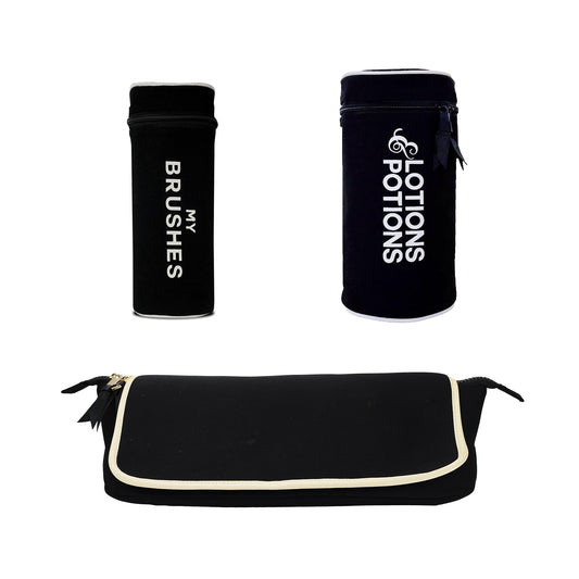 キャリーオン必需品ディールギフトセット、3パックパスポート、液体&メイクアップオーガナイザー、ブラック